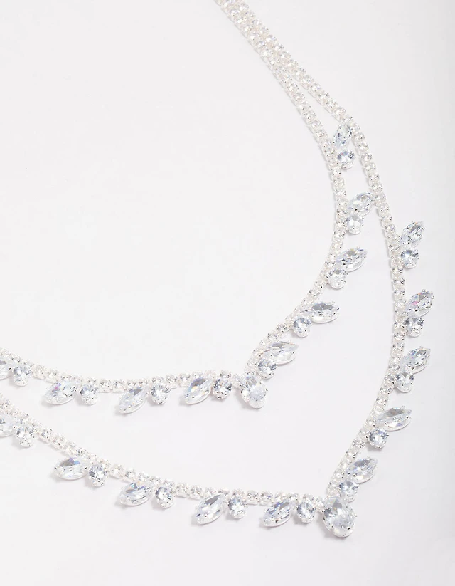 Silver Cubic Zirconia Double Layer Pear Stone Necklace