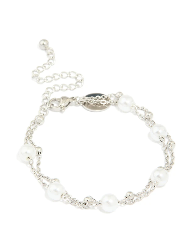 Waterproof Stainless Steel Pearl & Ball Layered Bracelet