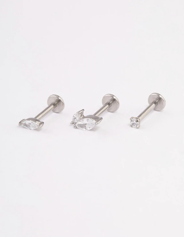 Surgical Steel Cubic Zirconia Double Baguette Flat Back Studs 3-Pack