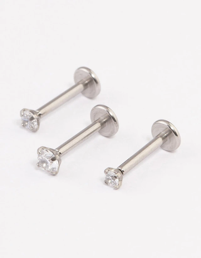 Surgical Steel Cubic Zirconia Stud Flat Back Pack