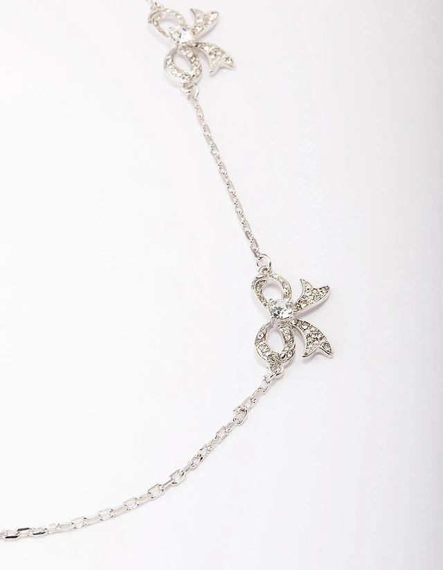 Silver Diamante Thin Pavé Twisted Necklace & Earrings Set