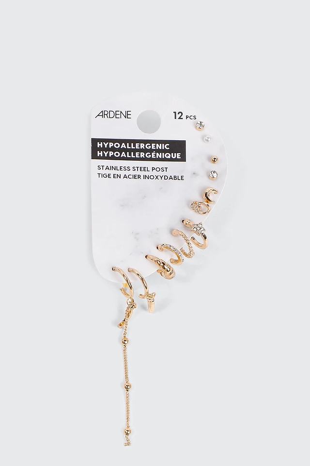 Ardene 12-Pack of Gold Toned Mix Earrings | Stainless Steel