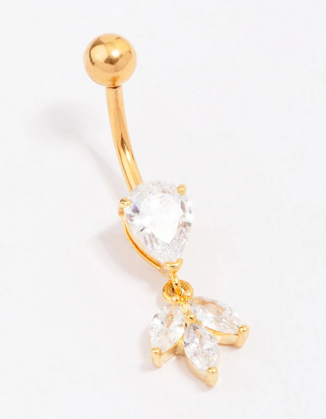 Gold Plated Titanium Cubic Zirconia Marquise Belly Piercing