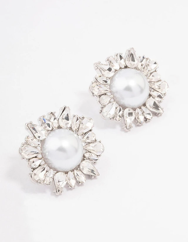 Silver Pearl Stud & Diamante Cupchain Earrings 3-Pack