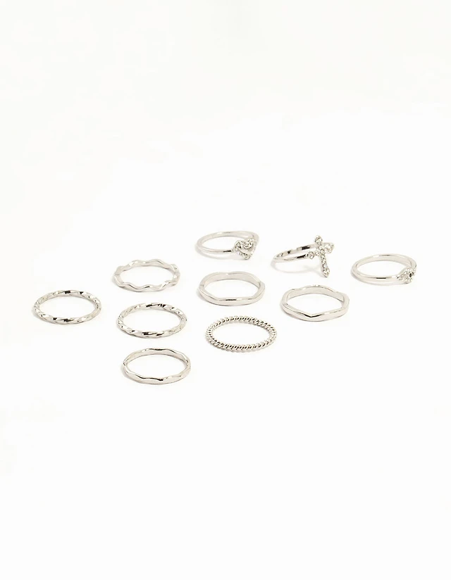 Silver Gothic Cross & Twisted Stacking Rings 12-Pack