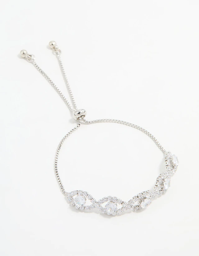 Silver Cubic Zirconia Evil Eye Toggle Bracelet