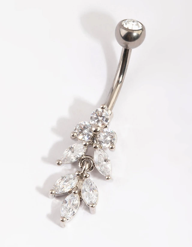 Titanium Cubic Zirconia Teardrop Dangle Belly Piercing