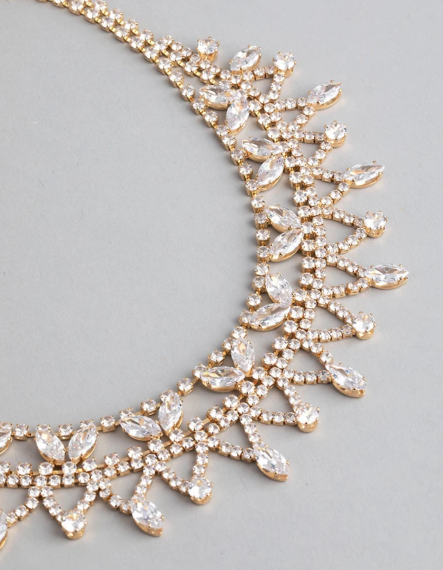 Silver Cubic Zirconia Statement Necklace & Earrings Set