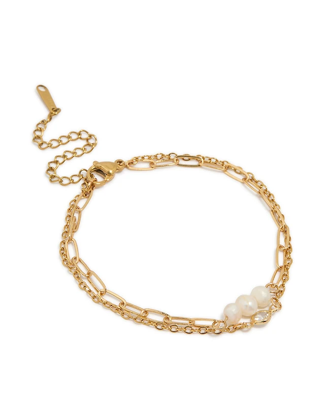Waterproof Gold Plated Stainless Steel Pearl Fine Pin Chain Bracelet