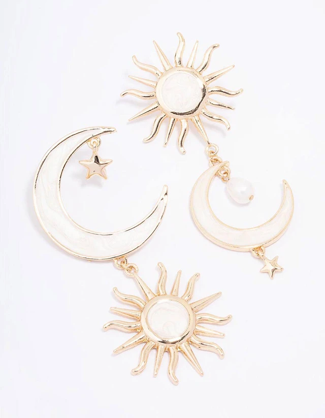 Antique Gold Sun & Star Huggie & Stud Earrings 6-Pack