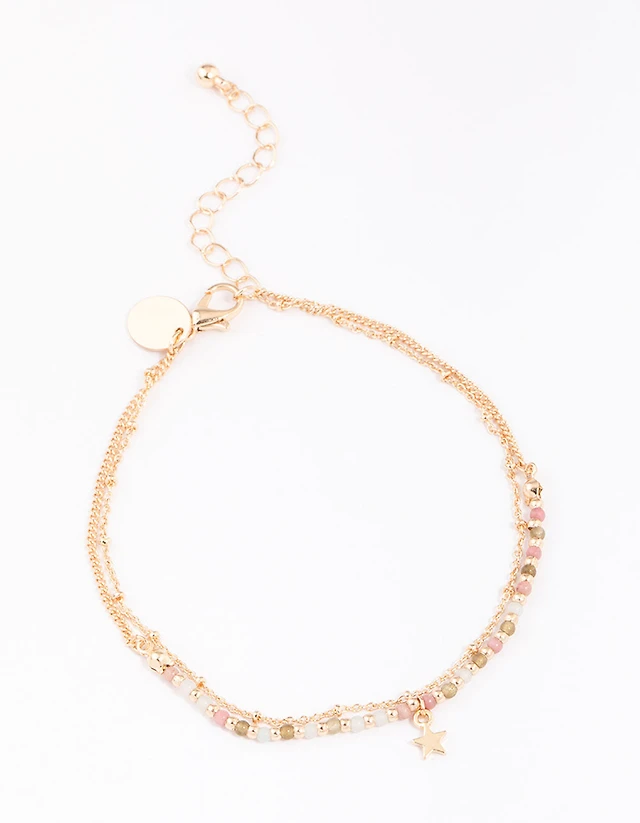 Waterproof Gold Plated Stainless Steel Moon Pendant Layered Necklace