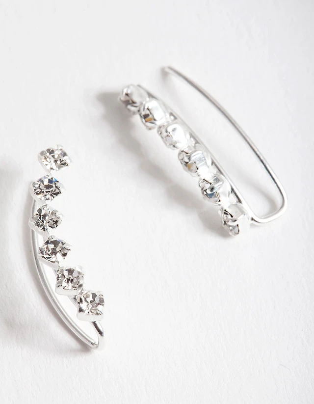 Silver Cubic Zirconia Navette Stud Earrings