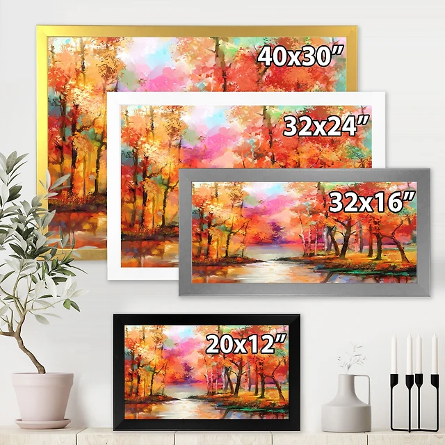 Colorful Autumn Trees by The Lake Canvas Wall Art Print