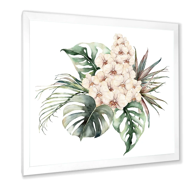 Tropical Bouquet with Orchids Palm Leaves Canvas Wall Art Print