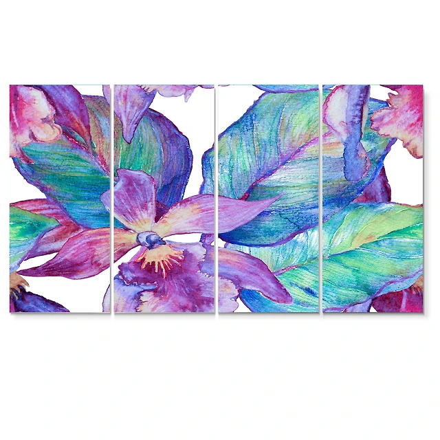 Navy Blue Agave Leaves Canvas Wall Art Panels