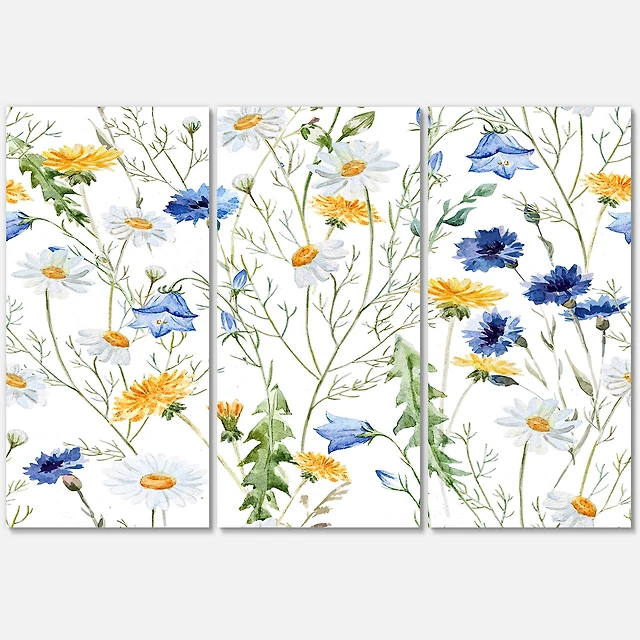 Watercolor Farmhouse Flower Motif Background XI Canvas Wall Art Print
