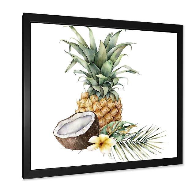 Pineapple with Coconut Plumeria and Palm Leaves Canvas Wall Art Print