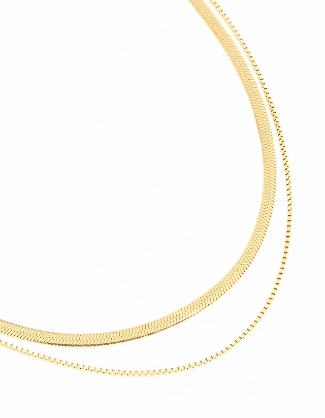 Waterproof Gold Plated Stainless Steel Mixed Chain Layered Necklace