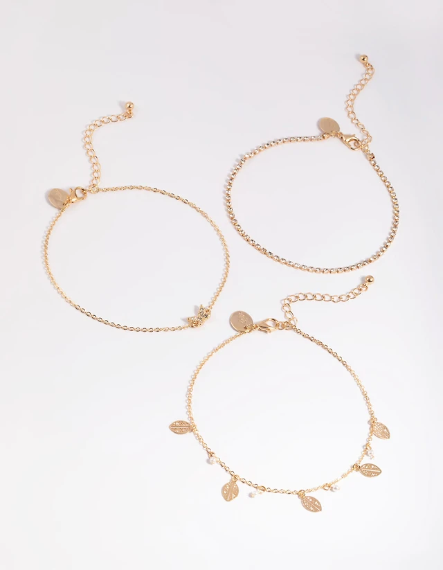 Gold Pearl Disc & Twisted Anklets 3-Pack