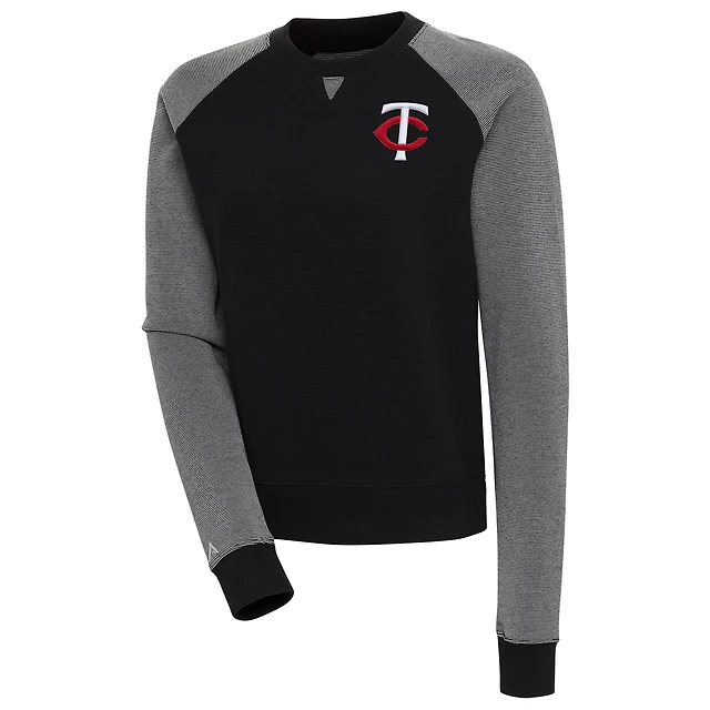 Women's Antigua Black/White Minnesota Twins Flier Bunker Tri-Blend Pullover Sweatshirt