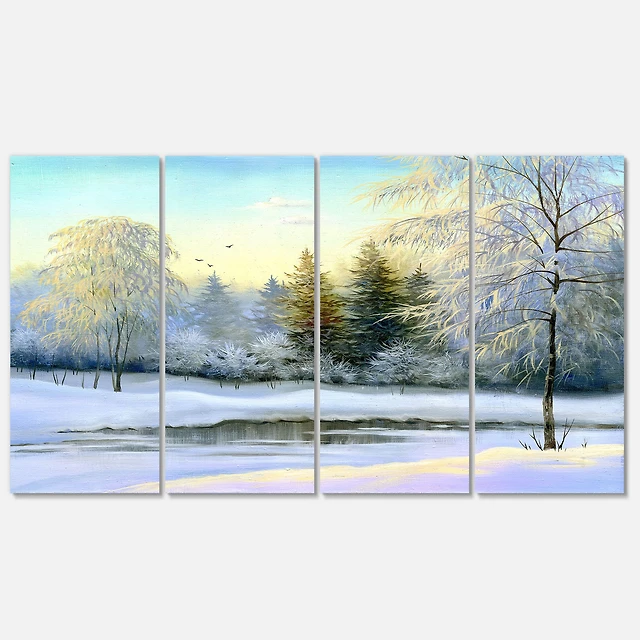 Winter Lake Deep Forest Canvas Wall Art Panels