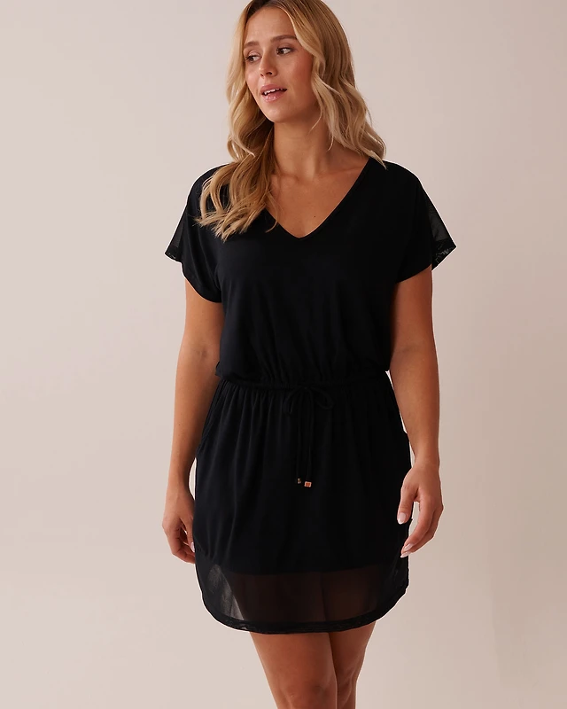 Recycled Fibers Short Sleeve Dress with Mesh Inserts