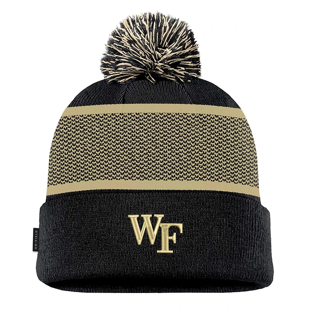 Youth Nike Black Wake Forest Demon Deacons 2024 Sideline Peak Cuffed Knit Hat with Pom