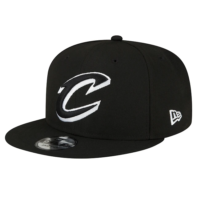 Men's New Era Cleveland Cavaliers Black & White 9FIFTY Snapback Hat