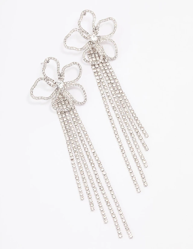 Silver Diamante Leaf Cup Chain Drop Earrings