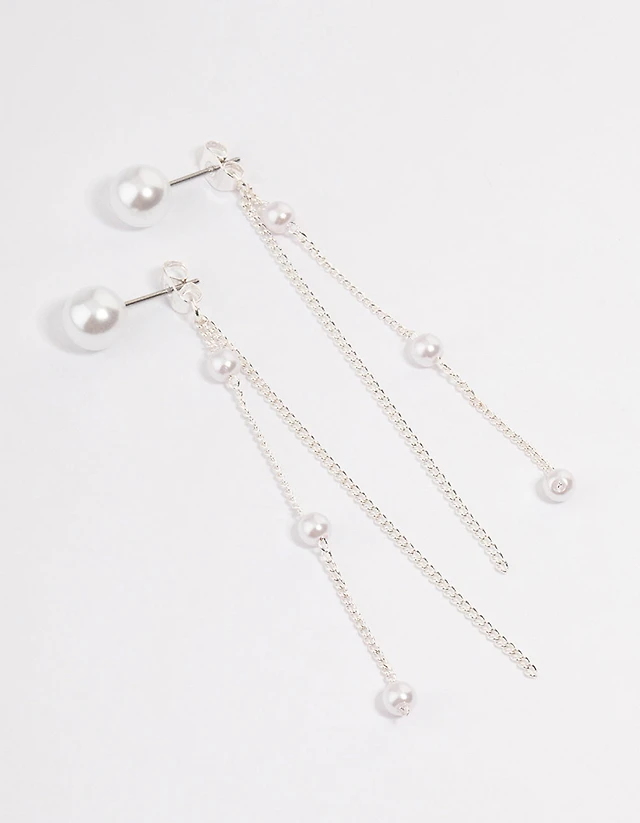Silver Cup Chain Large Pearl Drop Earrings