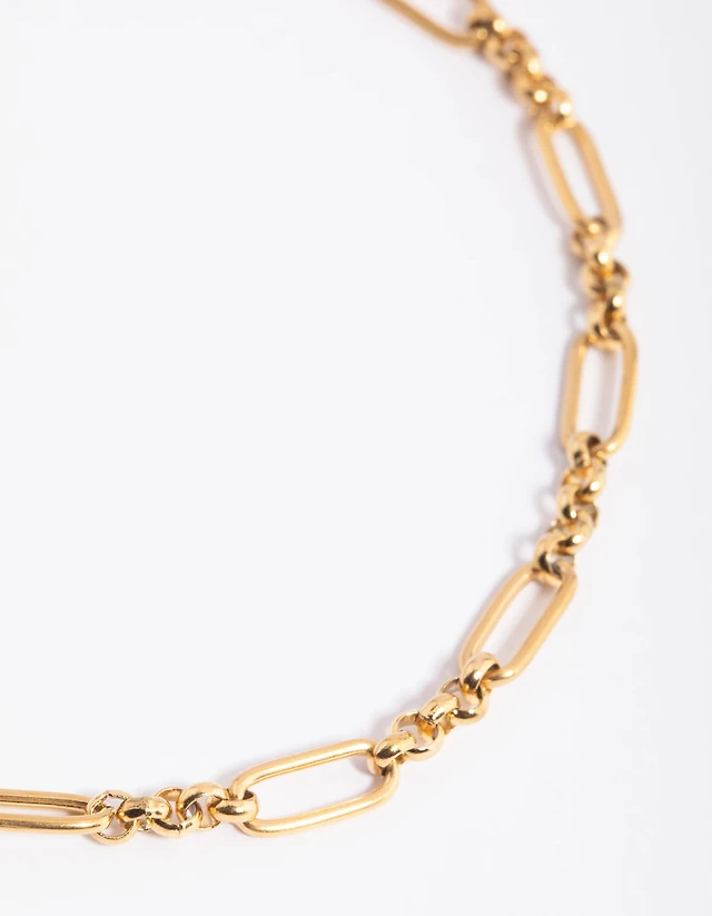 Gold Plated Thick Figaro Chain Necklace
