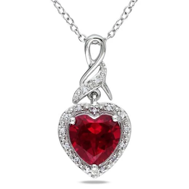 Julianna B Sterling Silver Created Ruby & Diamond Heart Twist Pendant with Chain