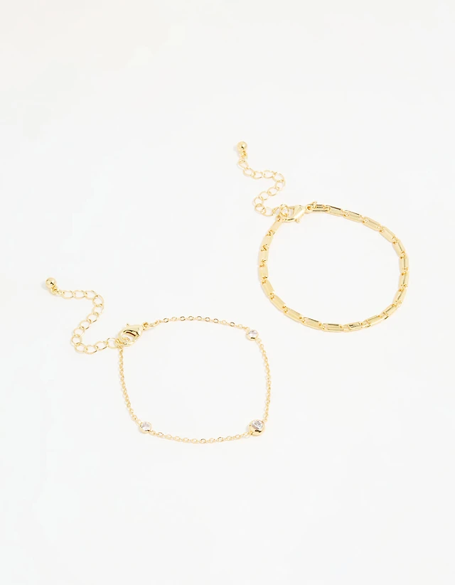 Silver Cubic Zirconia Drop & Chain Bracelets 2-Pack