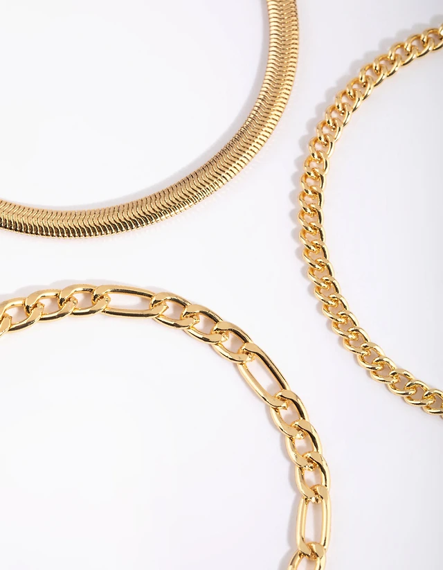 Gold Plated Snake Chain Bracelet Pack