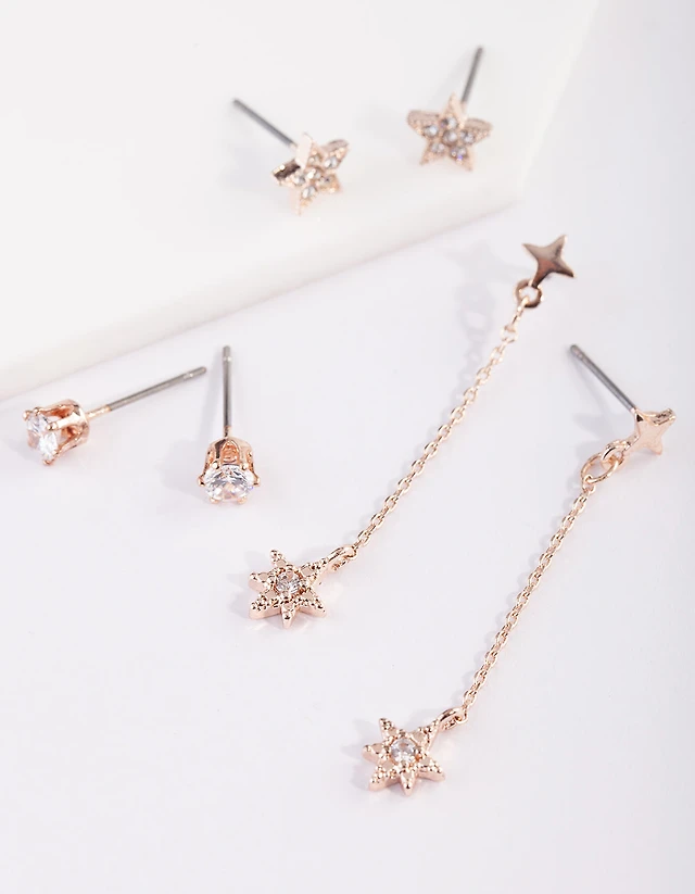 Gold Mixed Star Chain Anklet 3-Pack