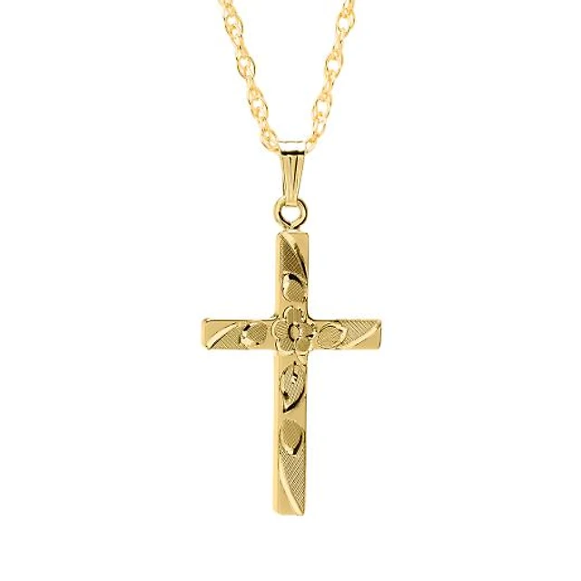14K Yellow Gold Filled 18" Floral Engraved Cross