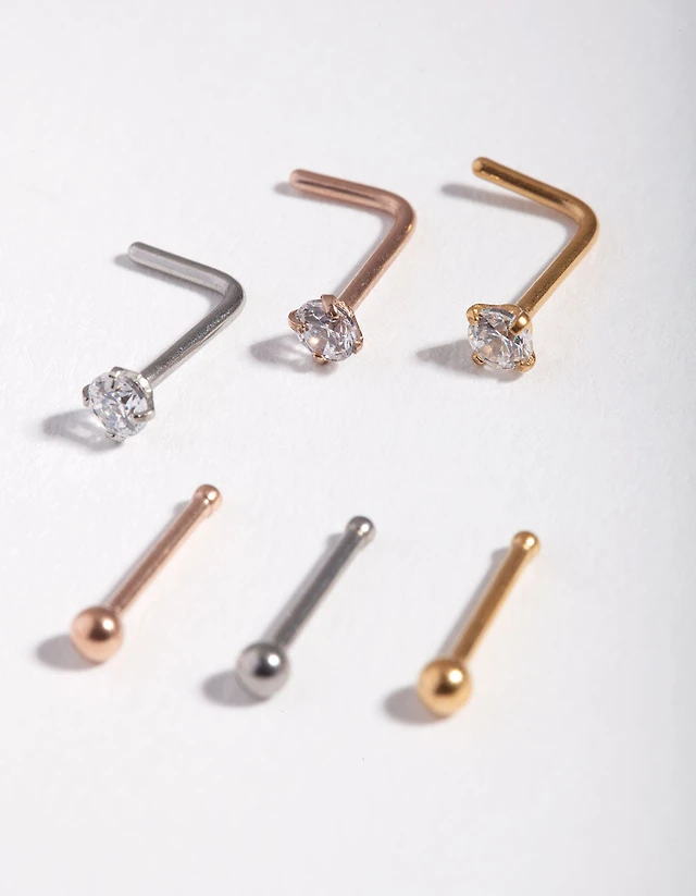 Mix Metal Sapphire Star Nose Stud 6-Pack