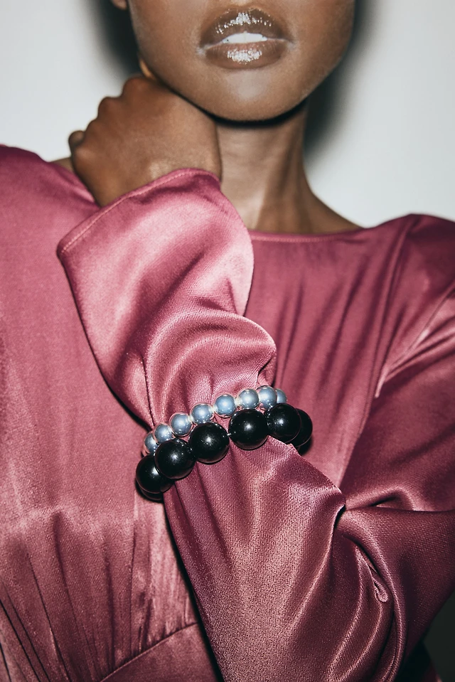 Chrysalis Metal Bead Adjustable Bangle in White Brass