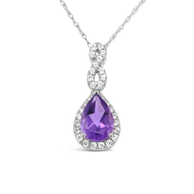 10K White Gold Amethyst and White Zircon Pendant