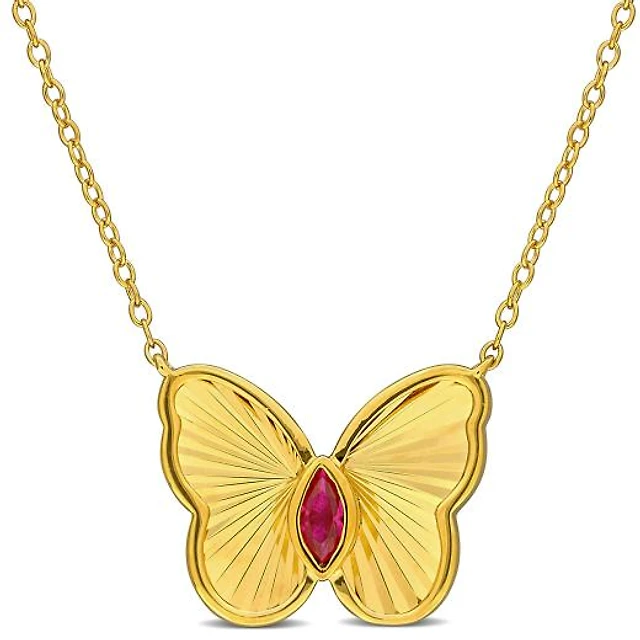 Sterling Silver Rose Plated Cubic Zirconia 19" Butterfly Pendant