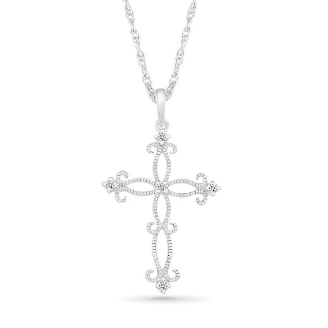 10K White & Yellow Gold 0.16CTW Diamond Cross Pendant