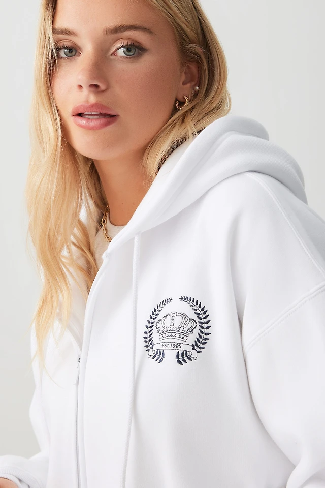 Ardene Oversized Zip Up Hoodie with Embroidery in | Size | Polyester/Cotton | Fleece-Lined