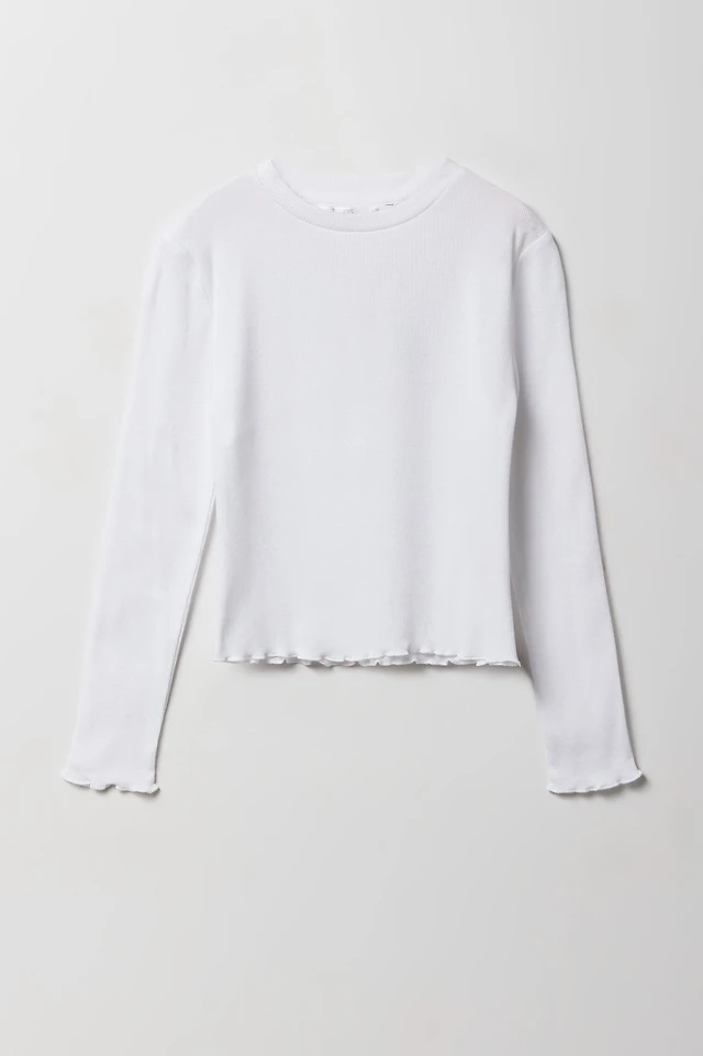 Classic Ribbed Scoop Neck Long Sleeve Top