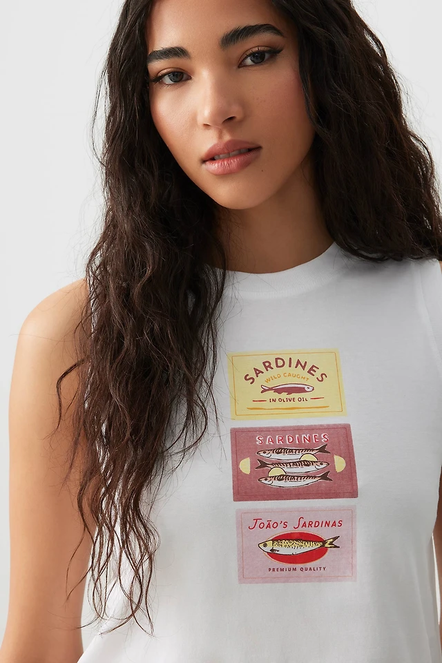 Ardene Contrast Trim Graphic Tank Top in | Size | Spandex/Cotton