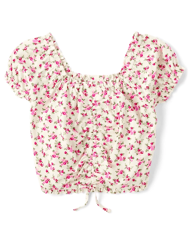 Floral Print Long V-Neck Top with Dropped Shoulders & Raw Edges by Froccella