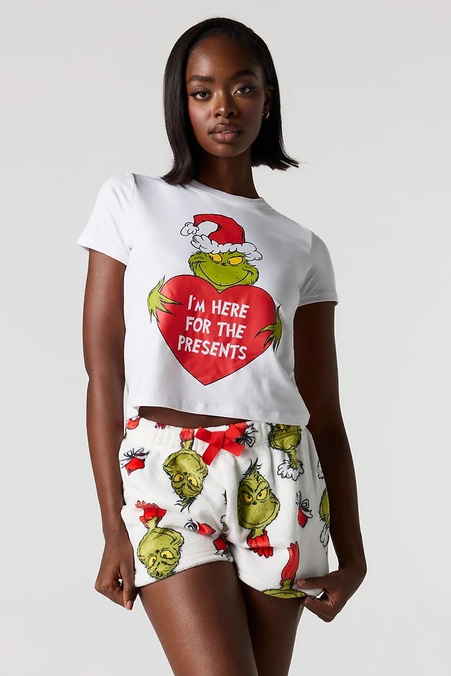 Grinch Printed T-Shirt & Plush Pant Pajama Set