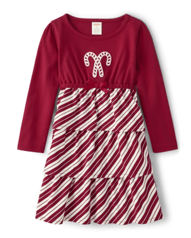Girls Embroidered Candy Canes Ruffle Tiered Dress - A Royal Christmas