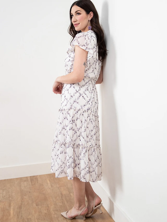Chiffon Ditsy Floral Flutter Sleeve Dress