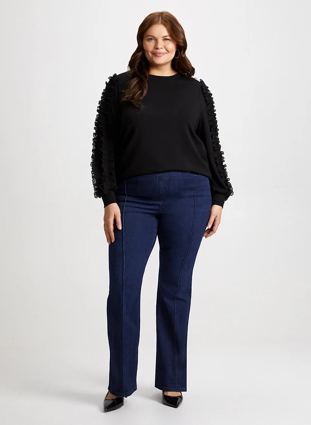 Ruffle Sleeve Blouse & Pull-On Jeans