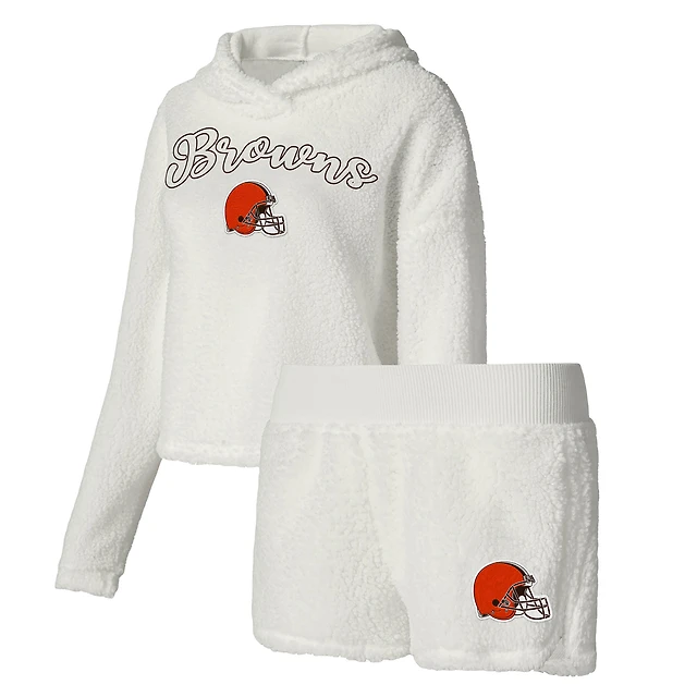 Women's Concepts Sport White Cleveland Browns Fluffy Pullover Sweatshirt & Shorts Sleep Set